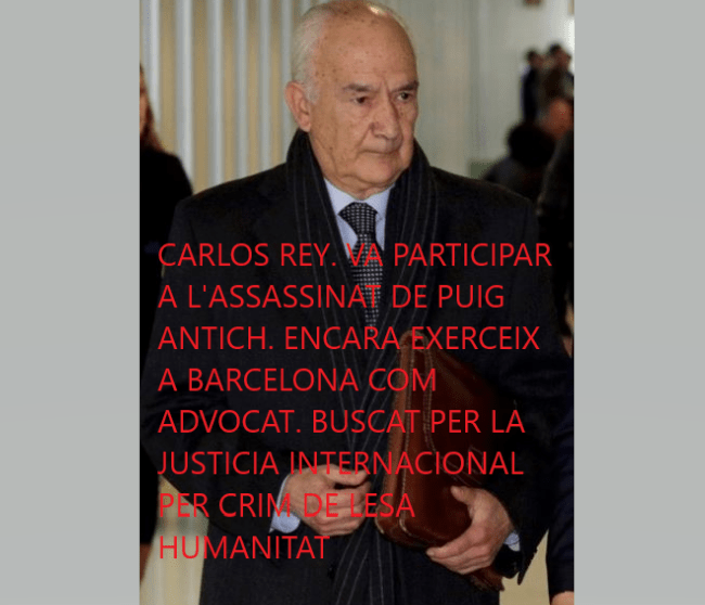 Maneres n’hi ha: campanyes per tal que el Col·legi d’advocats en decreti l’expulsió, escratxes com els que es feien a Argentina contra els militars de la dictadura, pressions perquè l’ajuntament (amb una alcaldessa nascuda el dia en que Puig Antich acabava la seva vida a una sala de la Modelo) declari solemnement Carlos Rey persona no grata a Barcelona…