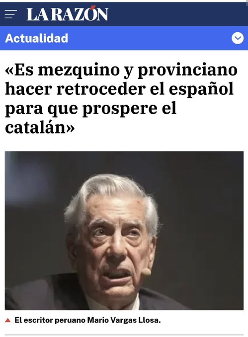 El súmmum del cinisme, i del nacionalisme banal més obtús s’assoleix, però, en l’al·lusió al conflicte català plantejat per l’independentisme. Estem, ai las, acostumats a la inversió de la mirada sobre “el desafiament català” (en llenguatge popular “piensa el ladrón que todos son de su condición”) que caracteritza autoproclamats analistes polítics convençuts que la unitat d’Espanya es quelcom de sagrat, inviolable, natural i mereixedor de tota mena de sacrificis, fins i tot humans.